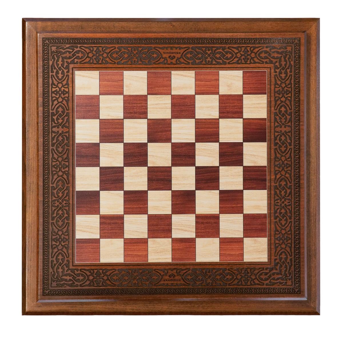 Anadolia tarafından özenle tasarlanan Çekmeceli Premium Ahşap Satranç Masası, fırınlanmış Kayın Ağacı’ndan yapılmıştır. Vernikleme işlemi, dayanıklılığı yüksek olan özel bir vernikle gerçekleştirilmiştir ve satranç masasının uzun ömürlü olabilmesi için dayanıklılığı arttırılmıştır. Yaşam çiçeği formlu, özel işlemeli satranç masasının oyun alanında, ağaç dokusunu bozmayacak şekilde dijital baskı uygulanmıştır. Masaya 2 adet çekmece eklenmiş ve altın kulplarla süslenmiştir.